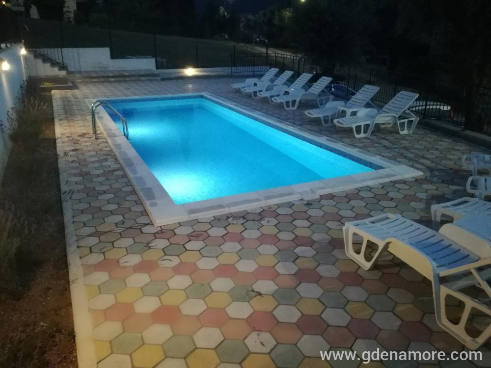 U Kumboru, oko 200m od mora izdajemo veliki apartman sa dve spavaće i dnevnom sobom, površine 90m2 okružen zelenilom i prirodnom hladovinom. Sa terase se pruža divan pogled na Herceg Novi i ulaz u Bokokotorski zaliv. Cijena ovog apartmana je u rasponu od 40 € do 100 €, zavisno od toga dali se rad...